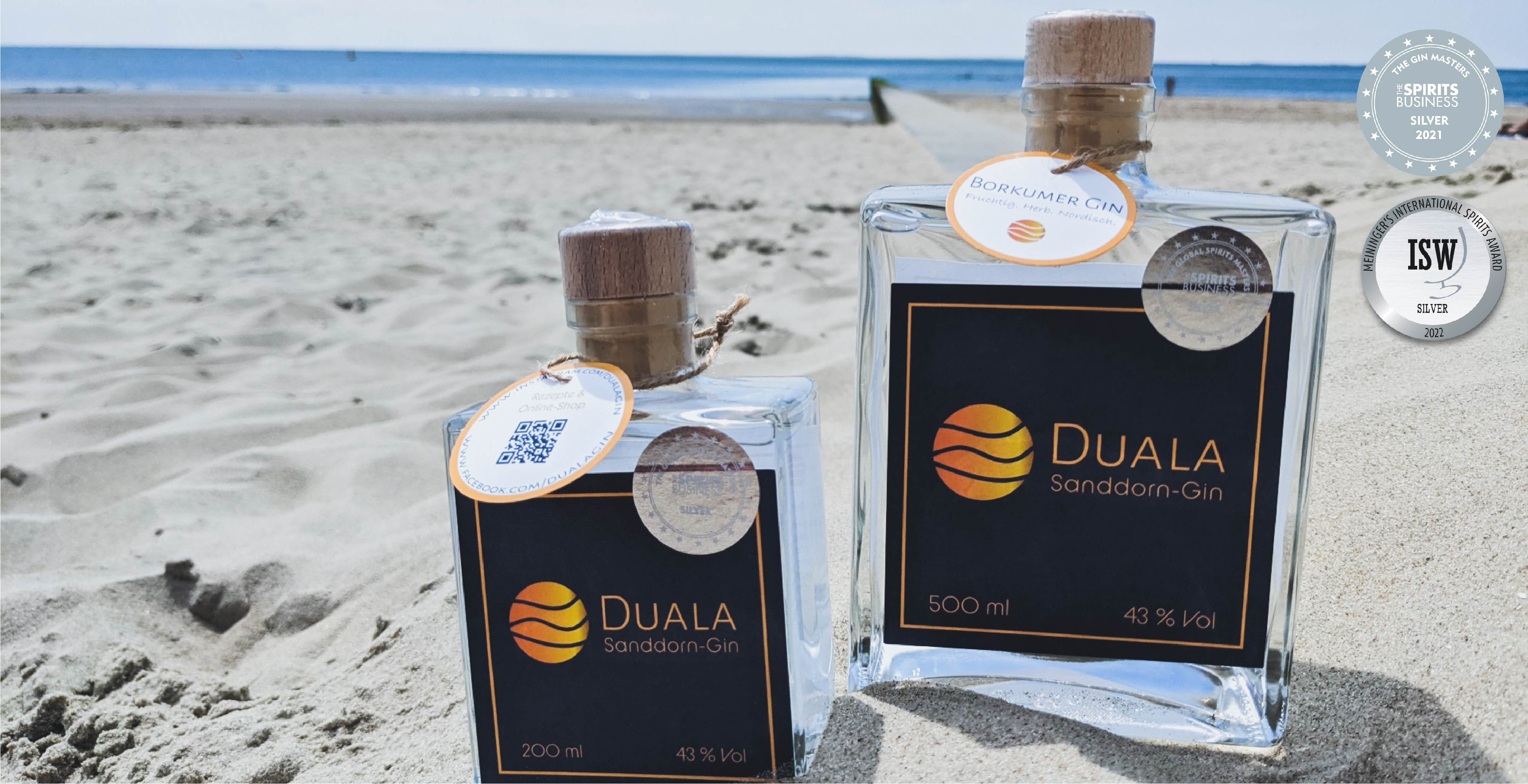 Zum ShopDuala Sanddorn-Gin ist benannt nach der weitläufigen Borkumer Dünenlandschaft, wo die Sanddornbeeren ihre Heimat haben. Ein handcrafted Dry Gin aus hochwertigen Zutaten, ohne nachträgliche Aromatisierung, dafür mit intensiver Frucht und einzigartigem Geschmack. International ausgezeichnet!